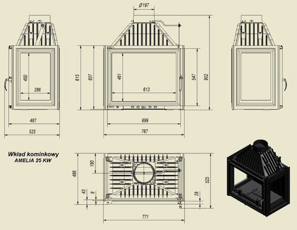 - Диаметр дымохода, (мм) 200
