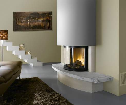 Топка на фото - DESIGN D850 - 180°. Ссылки на подходящие к данному камину топки указаны справа под техническими характеристиками. Возможна адаптация под топки любых размеров.