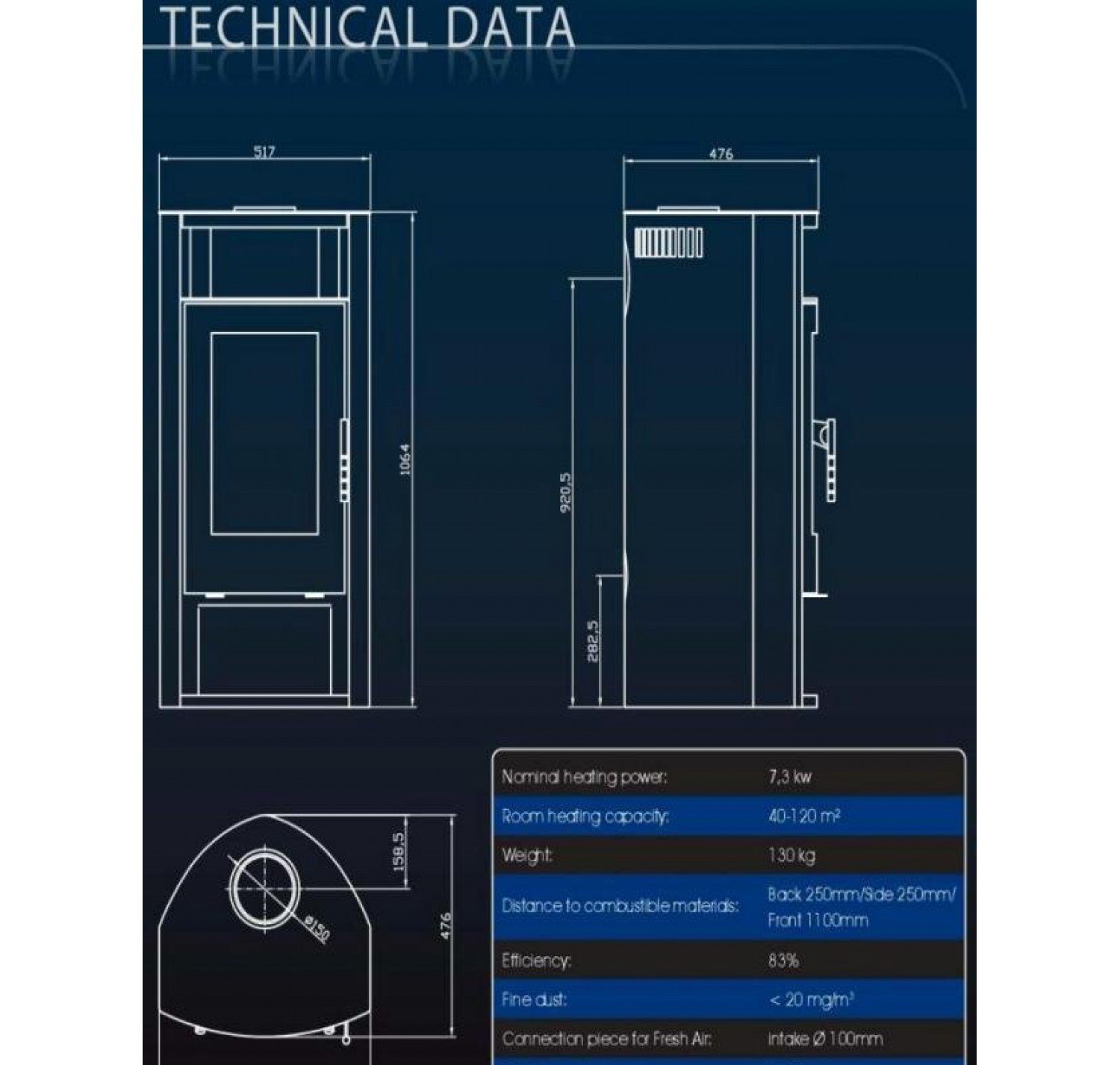 - Диаметр дымохода, (мм) 150 мм.