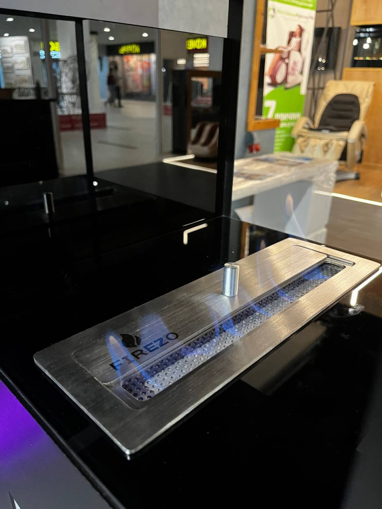 Уникальный биокамин – Firezo M Performance отражает стиль и дизайн немецкого автомобиля. Металлический каркас и стенки из дерева гармонично сочетаются с накладками из эко кожи и алькантары. Также внутри камина мы сделали мини бар – это точно удивит!